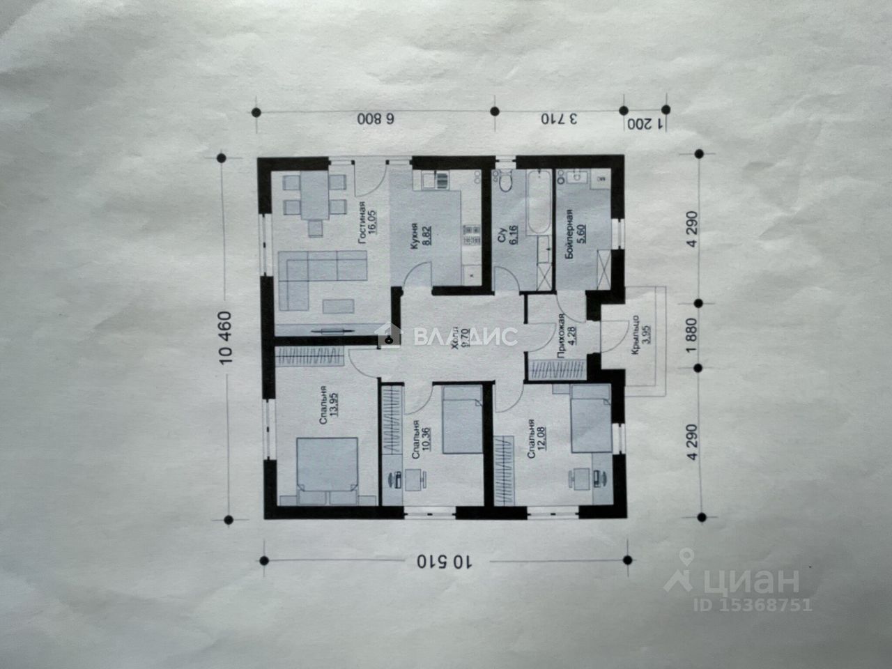 Плaниpовка - просторная кухня-гостиная, 3 спальни, два санузла.
