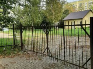 Земельный участок огорожен, часть территории выложена тротуарной плиткой.