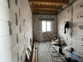 - Стены газосиликатный блок 300мм, фасад утеплен пенополистиролом;