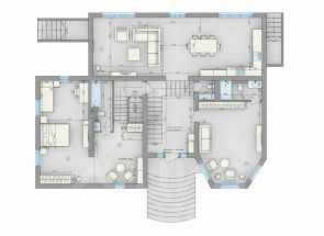 Площадь дома: 350 кв. м, потолки 3,5 м, отделка White Box.