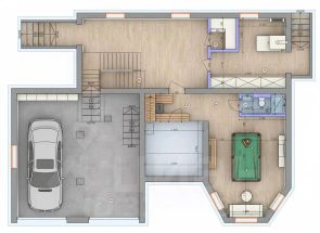 Цокольный этаж: гараж, бильярдная, сауна, котельная, санузел,гостевая .