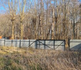 Участок огорожен , очищен от деревьев, подведено электричество -15 квт, вода подведена -городской водопровод. Два соседа, больше нет и не будет.