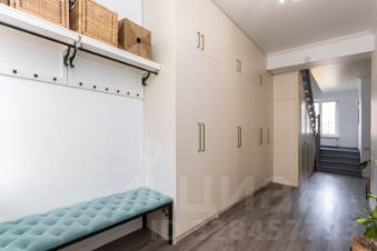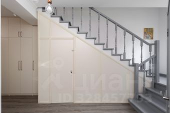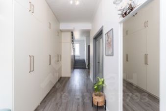 На первом этаже расположена большая кухня-гостиная и гостевой санузел. Высокие встроенные шкафы в коридоре обеспечивают много места для хранения вещей, также с этой целью использовано место под лестницей, где оборудована небольшая кладовка.