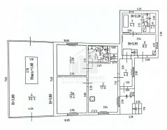 На первом высоком этаже расположены - большая кухня 17,6 кв м и 2 комнаты 9,4 кв м + 11,4 кв м.