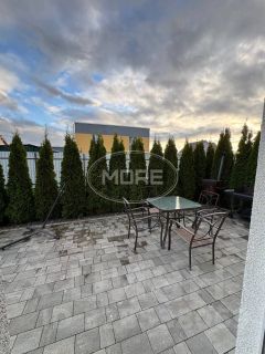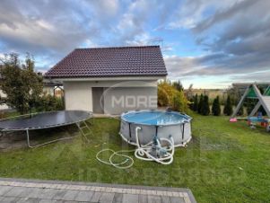Территория вокруг дома в отличном состоянии и лишена лишних элементов. Есть действующая баня, зона барбекю, детская площадка, небольшой огород + теплица. Баня электрическая. Ворота откатные с пультом управления.