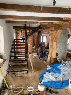 Дизайнерский потенциал: Внутри — высокие потолки, массивные деревянные балки и кирпичные колонны. Готовая база для интерьера в стиле Loft или уютного Country-шале.