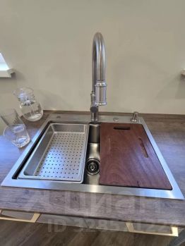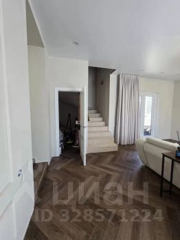 Первый этаж дома - гостевой: кухня-столовая, гардеробная (кладовка или кладовая) санузел и гостиная с выходом на террасы на обе стороны дома (террасы монолитная плита на полу). На полу кварцвинил во всех комнатах.