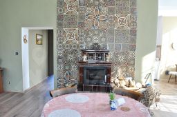Площадь дома 155 кв.м. На первом этаже кухня-гостинная с действующим красивым камином, спальня, санузел, прихожая.