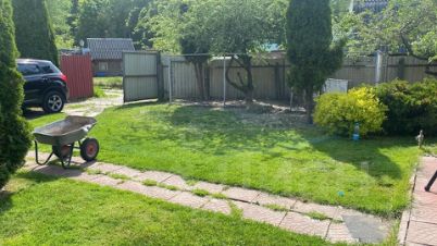 На участке высажены яблони, груши, , слива, вишня, хвойные растения.
