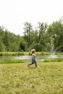 Большой ухоженный парк площадью более 300 000 м2 с вековыми деревьями , прогулочными дорожками и зонами отдыха. 2 озера с лебедями , фонтан .
