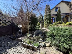 - на участке взрослый и ухоженный сад с туями, прекрасной магнолией, сакурой и глицинией.