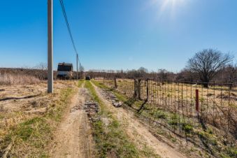 Участок ровной формы, по границе стоят столбы с электричеством, дорога насыпная, общество стремительно развивается.