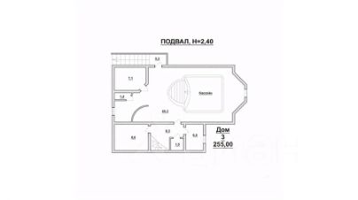Цоколь-бассейн, баня, душ, санузел, выход в сад, прачечная.