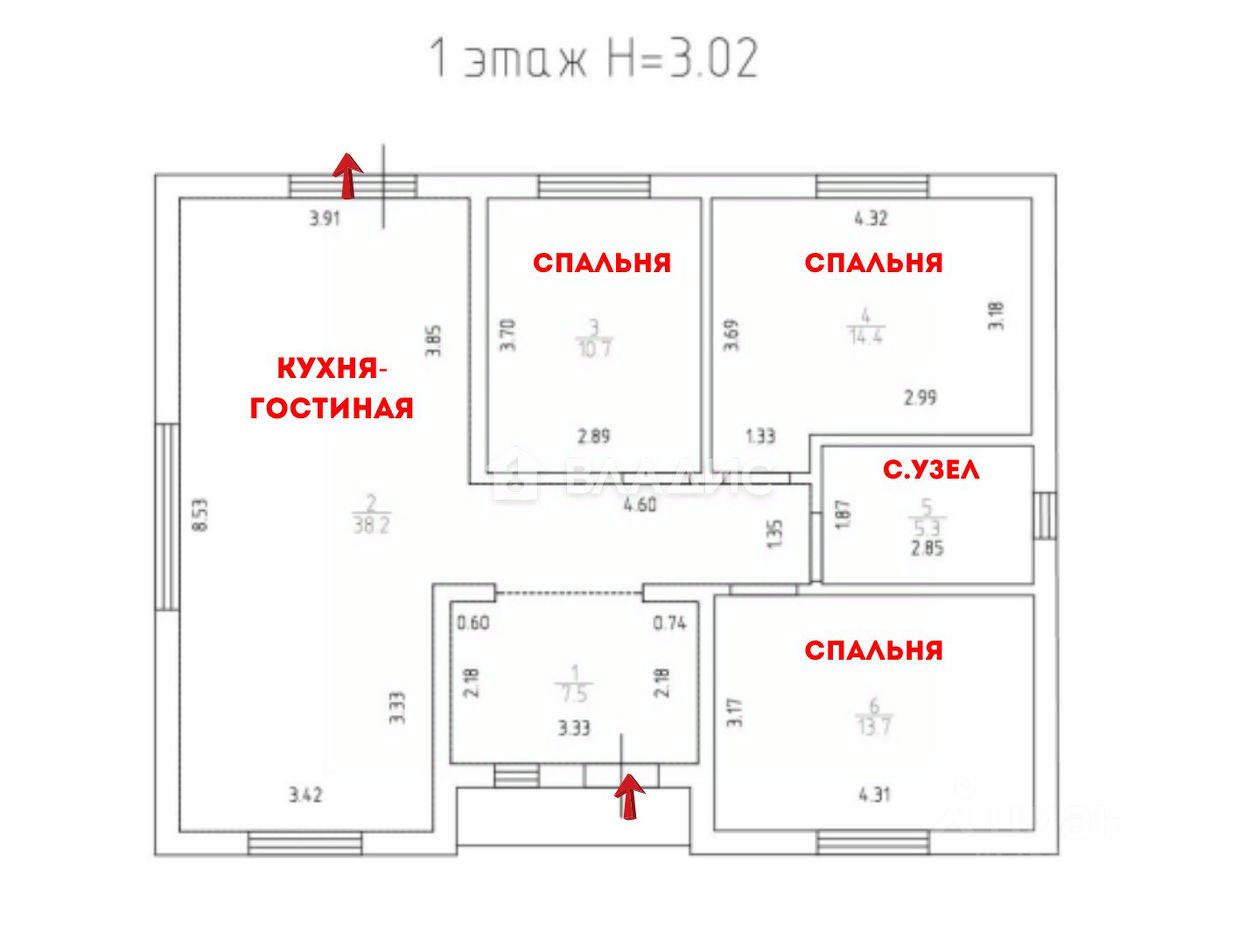 - 3 спальни - 14.4 + 13.7 +10.7 м²