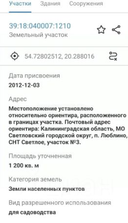 Предлагаем к продаже земельный участок общей площадью 12 сот. расположенный по адресу Калининградская обл.Светловский городской округ,п.Люблино СНТ Светлое.Хорошие подъездные пути.Участок ровный,правильной формы.Электрические столбы на границе участка. Номер в базе: J33190