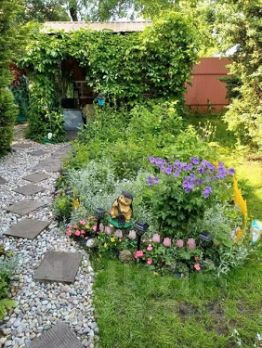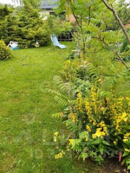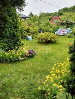 Участок 5,5 соток. Ухоженный, плотно засажен взрослыми хвойными деревьями — сосны, ели. Воздух лесной, соседей почти не видно.