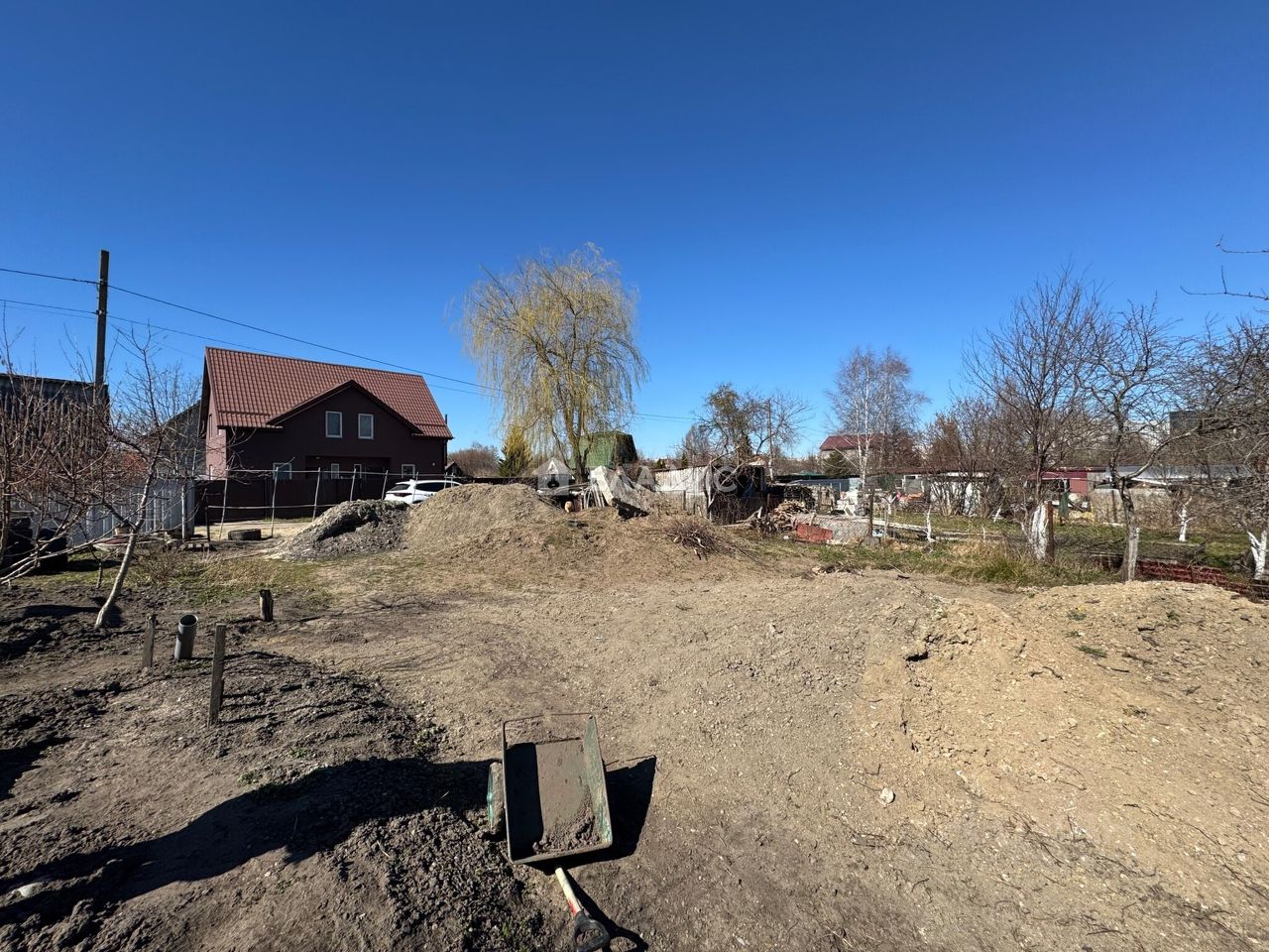Участок поднят, имеется материал для дальнейшей посыпки и формирования участка, свет оплачен, за подведение света собственник готов взять расходы на себя 27 000 руб, в данном СНТ газ к дому проводят бесплатно, частично куплены материалы на забор стоимостью 100 000 руб.