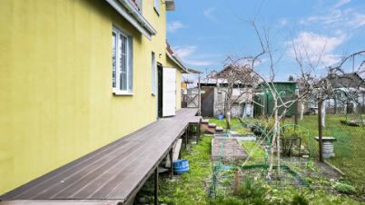 Огороженный просторный придомовой участок. Индивидуальная парковка на две машины. Огромный контейнер оборудованный под хранение личных вещей, инструмента, садового инвентаря. Отдельная постройка под баню.