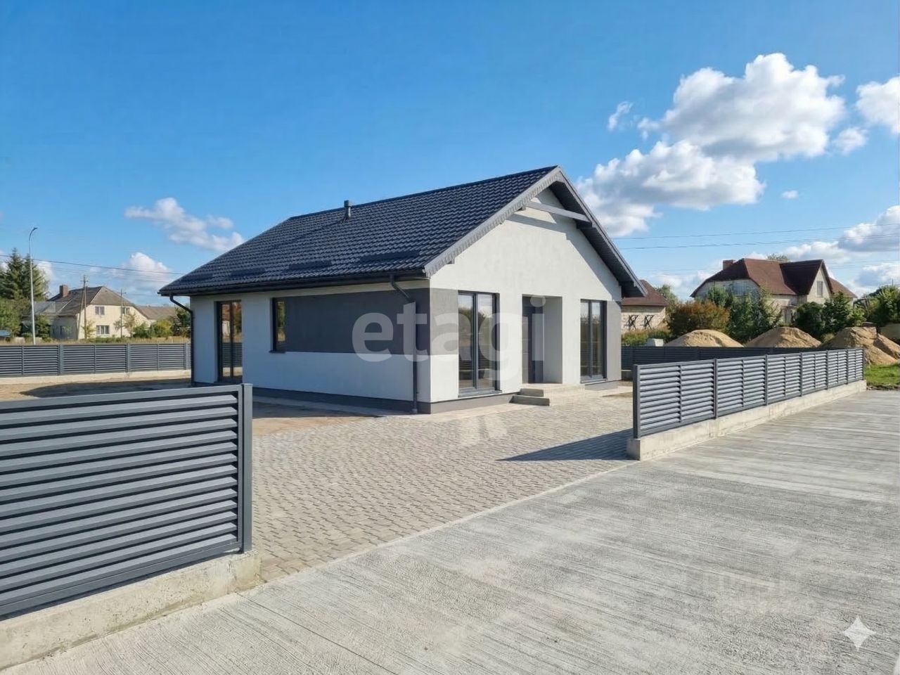 Парковка: Площадка на 2 автомобиля и отмостка выложены тротуарной плиткой.