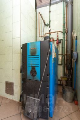 В котельной установлен твердотопливный котел классический (прямого сгорания) с чугунным теплообменником немецкой фирмы Budtrus. Теплоноситель низкозамерзающая жидкость "теплый дом". Котел обеспечивает отопление дома, обогрев полов (подключаемых) помещений первого этажа: прихожей, ванны, кухни. Горячее водоснабжение дома от бойлера косвенного нагрева (может нагреваться от котла или электричества). Бойлер на 200л с сухим тэном.