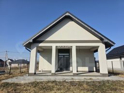 I-й этаж: холл более 10 кв.м, техпомещение, санузел с внешним окошком, две раздельные спальные комнаты -(14,1+14,2) кв.м, просторная и светлая гостиная- кухня-столовая -28 кв.м с панорамным остеклением и выходом на большую, крытую террасу площадью 22 кв.м. Высокие потолки (более 4 м) создают ощущение простора, улучшает циркуляцию воздуха, дает возможность для смелых архитектурных решений;