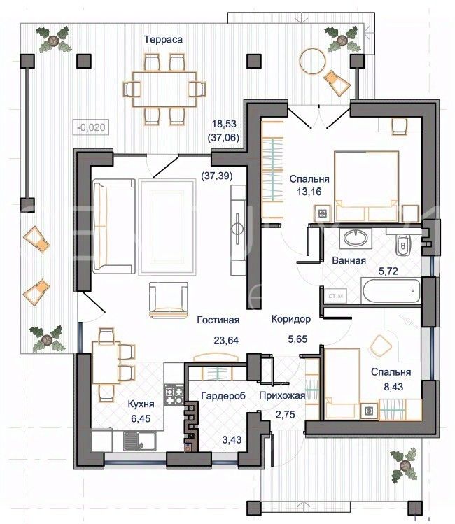 С террасой (не входит в площадь дома).