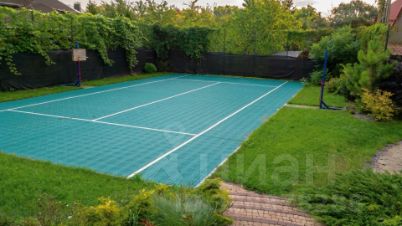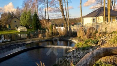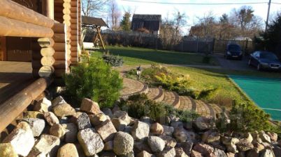 На территории есть теннисный корт, плавательный пруд с подсветкой, купальня, качели, зона для дров и различные уголки с посадками. Из зелени хвойные деревья разных