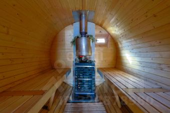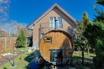 Огромный плюс - ухоженный участок. Растут деревья, кустарники, есть теплица. На участке есть баня-бочка. К дому прилегает крытая терраса.