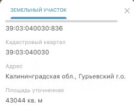 Продается земельный участок 4,3 Га (39:03:040030:836) п. Дорожный. (ор-р Орловка).
