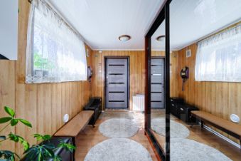 Сам дом 1945 года постройки, реставрирован. Состоит из двух частей. Стены состоят из кладки немецким кирпичом, часть из газосиликатных блоков, утепленных пенополистеролом и декоративной штукатуркой. Перекрытия - деревянные. Крыша двускатная - металлочерепица. Установлены качественные энергосберегающие стеклопакеты.
