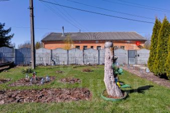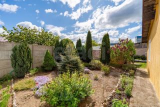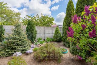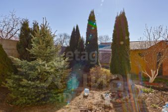 Огромный участок многоугольной формы. Огорожен, сухой, зонирован. Огромные откатные ворота. Высажены плодородные деревья. Цветы, плодовые кустарники, туи.