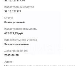 Кадастровый номер исходного участка: 39:15:121317:44.