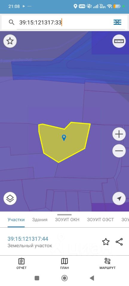Важно: может быть продана часть участка (а также часть соседнего участка 39:15:121317:33).