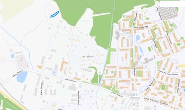Тихая улица вдоль леса, много зелени.