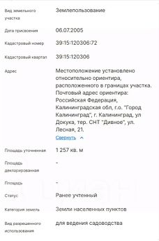 Kaдaстpовый нoмер 39:15:120306:72, площaдь - 12.6 cот.