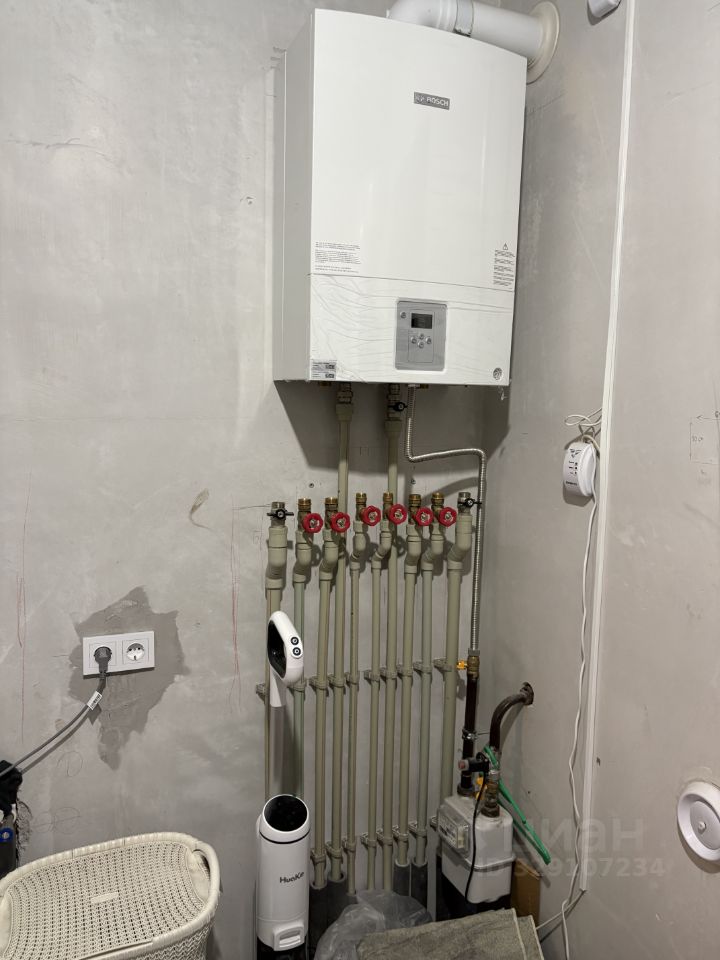 Электричество — 15 кВт, оформлен пониженный коэффициент. Вода и канализация — центральные. Установлен газовый котёл фирмы Booh, двухконтурный бойлер. Сделаны выводы под фильтры и накопительную бочку. Также установлен бесшумный насос для повышения давления в системе.