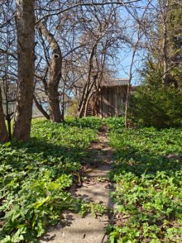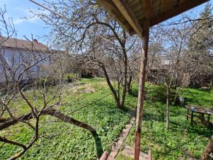 На участке есть небольшой сарай для хранения инвентаря. На участке растут яблони, дерево грецкого ореха, персиковое дерево, виноград Изабелла, черная и красная смородина, крыжовник. Участок сухой.