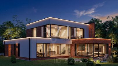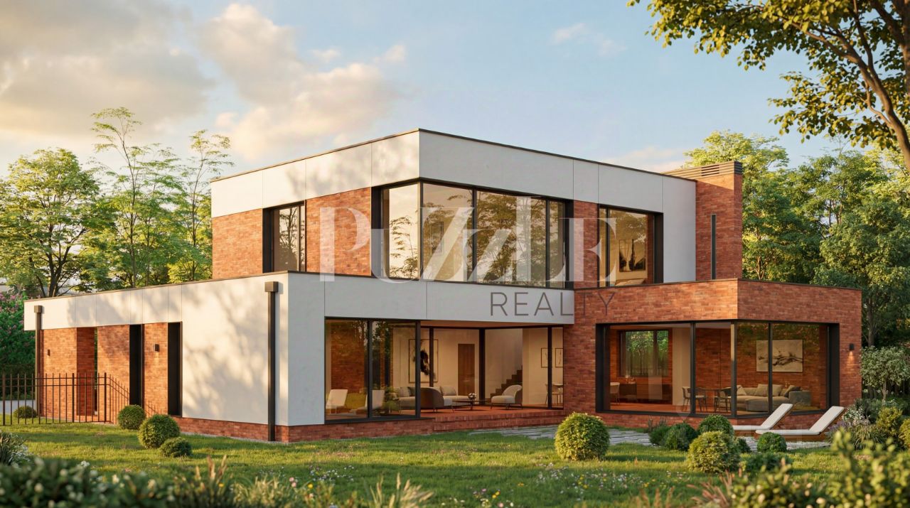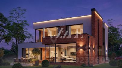 Дом площадью 329 кв. м выполнен в современном стиле с элегантной плоской кровлей. Просторные объёмы и панорамное остекление наполняют интерьеры светом и создают ощущение единства с природой.