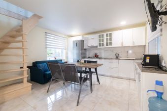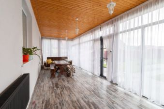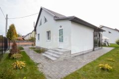 - Планировка гостевого дома предусматривает две комнаты и кухню-гостиную, что открывает возможности для создания дополнительного жилого пространства или коммерческого объекта.