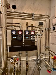 - Инженерное оснащение включает автономные системы: отопление реализовано на базе итальянского котла Lamborghini, водоснабжение обеспечено насосами Grundfos, а замкнутая система канализации исключает какие-либо экологические сбросы.