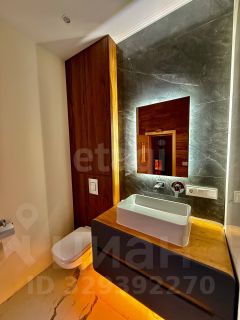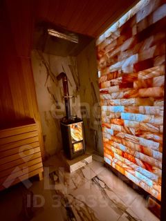 - Внутреннее пространство организовано с применением многоуровневого освещения, потолочной аудиосистемы и функциональных гардеробных зон. Кухонное оборудование Bosch включает индукционную панель и двухдверный холодильник, а отделка сочетает керамогранит и мраморные элементы. Отдельно стоящая баня из экологичных материалов оснащена дровяной топкой и солевой стеной с декоративной подсветкой.