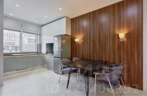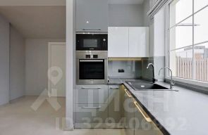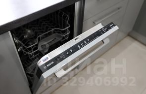 Кухня укомплектована техникой BOSСH: духовой шкаф, плита, микроволновая печь, холодильник, посудомоечная машина. Современная кухонная мебель, обеденная зона и место для отдыха у большого дивана. Всё, что на фото остаётся новым собственникам.