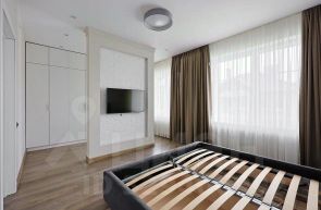 Спальни — две просторные комнаты в светлых тонах с функциональными системами хранения, кондиционер.