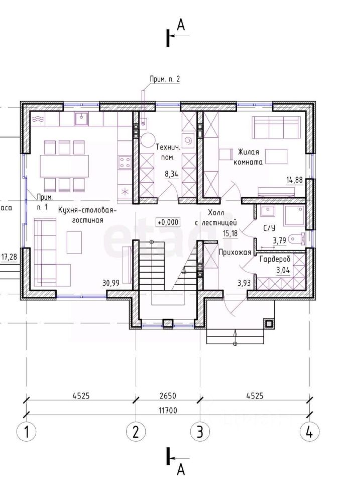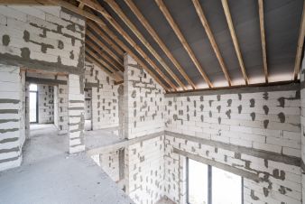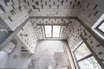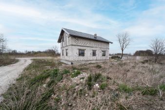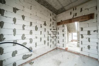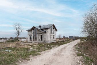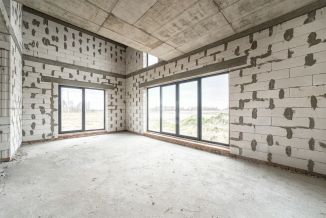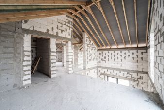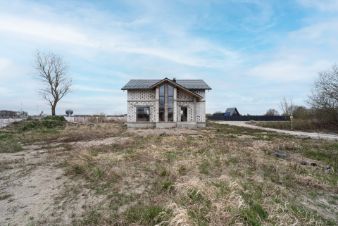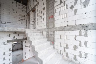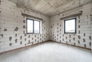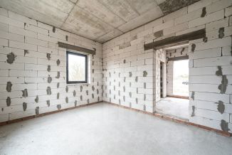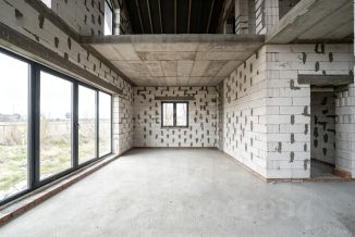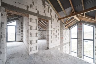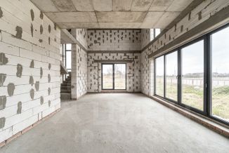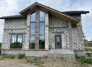 Стены из газосиликатного блока (300 мм), крыша — польская черепица. Фундамент ленточный с монолитной плитой и двойным армированием, перекрытия и лестница также монолитные — конструкция надёжная и долговечная. Высокие потолки создают ощущение простора. Установлены польские окна: пятикамерный профиль, тройные стеклопакеты. По участку проведён газ.