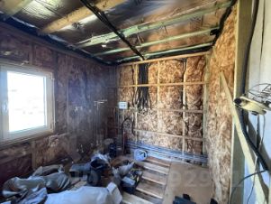 Дом каркасный, установлен на сваях. Серый ключ. Проводка проведена. Установлен септик. По всему периметру смонтирована дренажная система. Подготовлен котлован под бассейн. Участок сухой, правильной формы.