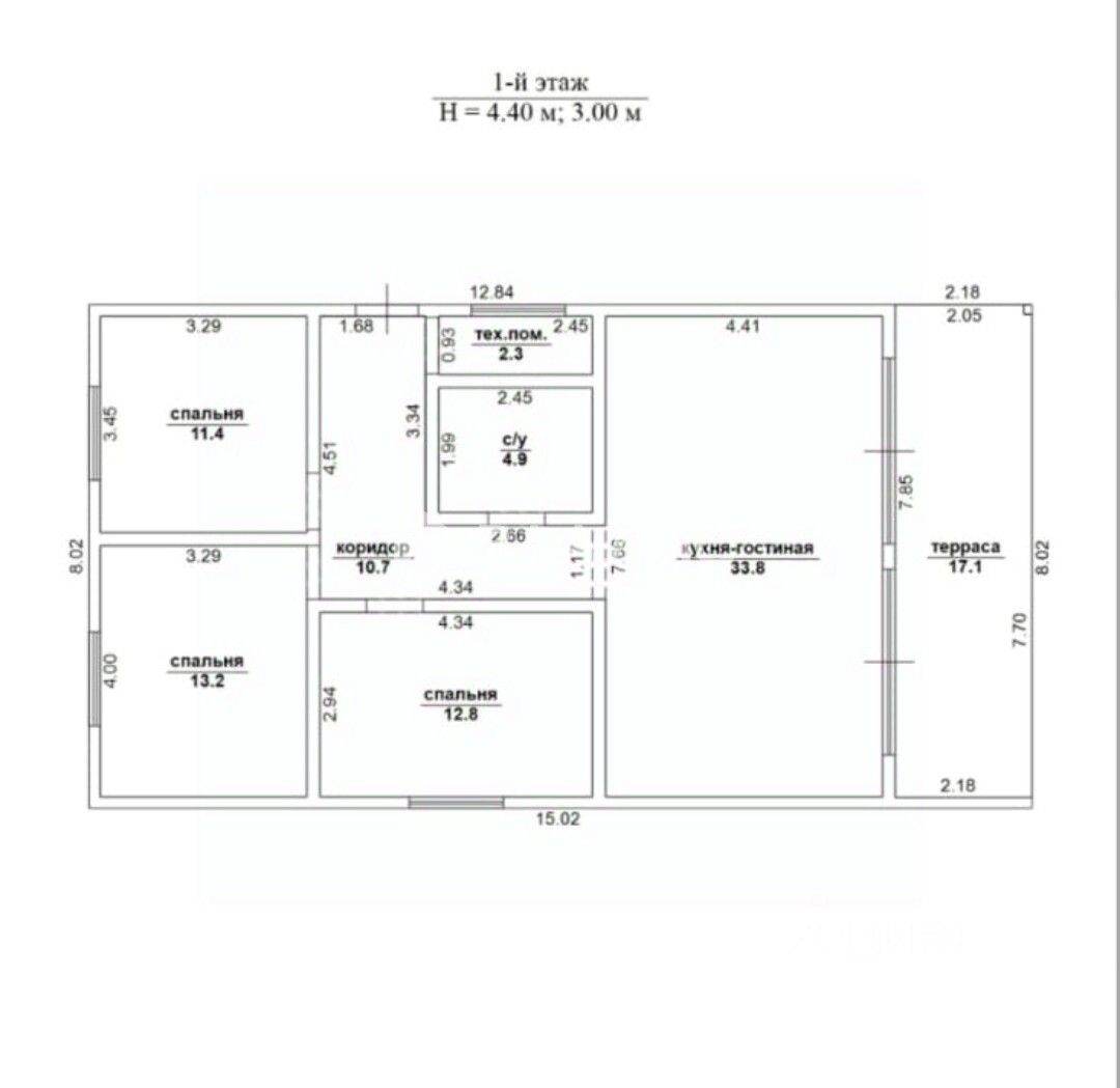 Плaниpовка - просторная кухня-гостиная, 3 спальни, санузел, хоз. помещение.