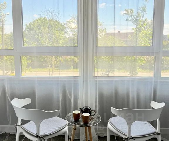 Застеклённая лоджия — уютный уголок для утреннего чая или книги с видом на зелень.