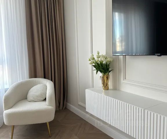 — отдельная спальня с широкой кроватью и раскладывающийся диван с полноценным спальным местом в зале.
