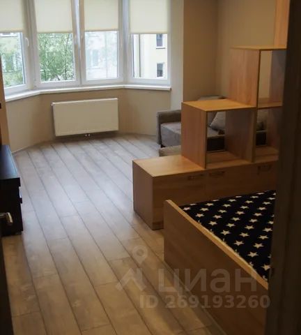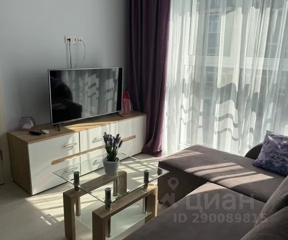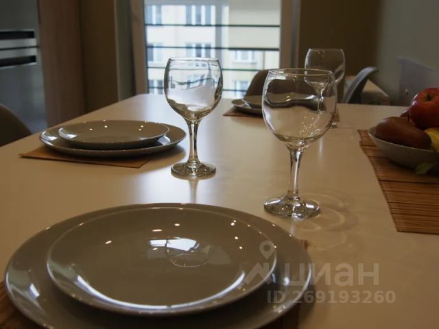 В квартире все предусмотрено для комфортного проживания гостей: зона отдыха с двухспальной кроватью и ортопедическим матрасом, отделенная стеклянной раздвижной перегородкой со шторами, зона гостиной с удобным диваном, кухня с обеденным столом и барной стойкой, лоджия с полноценным рабочим местом и уголком отдыха, просторная гардеробная для хранения вещей и багажа.