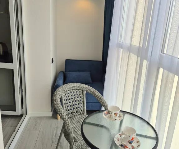 Чистая светлая уютная однокомнатная квартира с высокими 3-метровыми потолками, мансардными окнами в кухне-гостиной, современным дизайнерским ремонтом и автономным отоплением, что позволяет в любое время года поддерживать комфортную для проживания температуру воды и воздуха в квартире. Находится в доме, расположенном в 7 мин. спокойной ходьбы через центр города до побережья. Окна выходят на восточную сторону, в тихий двор, в связи с этим летом в квартире не бывает шумно и жарко. Район полностью застроен и дом полностью заселен, поэтому никаких строительных работ в доме и рядом с домом не производится. Двор не загружен транспортом, соответственно без проблем можно найти парковочное место у дома.